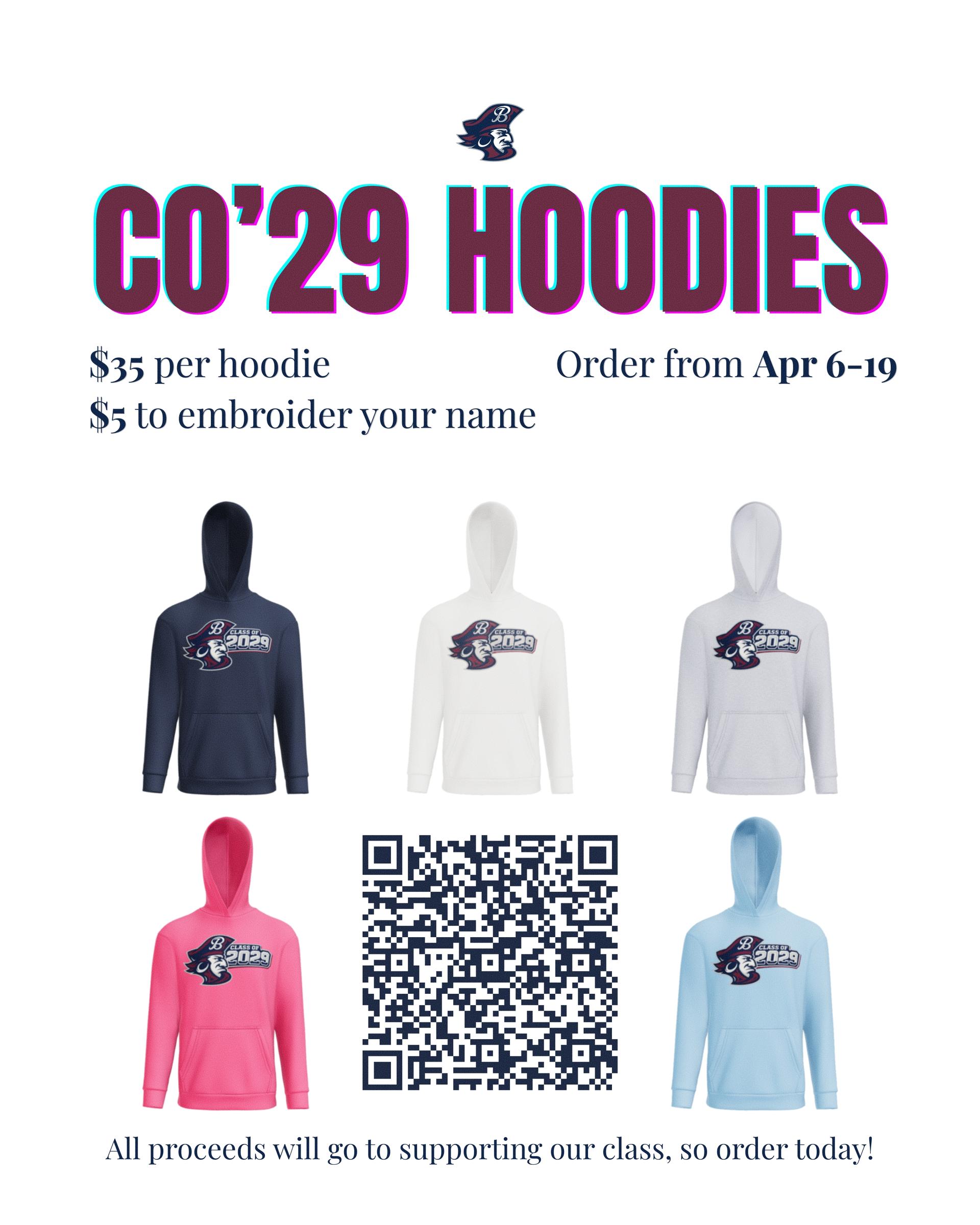 Support your Marauder today, and buy the BHS Class of 2029 hoodie!