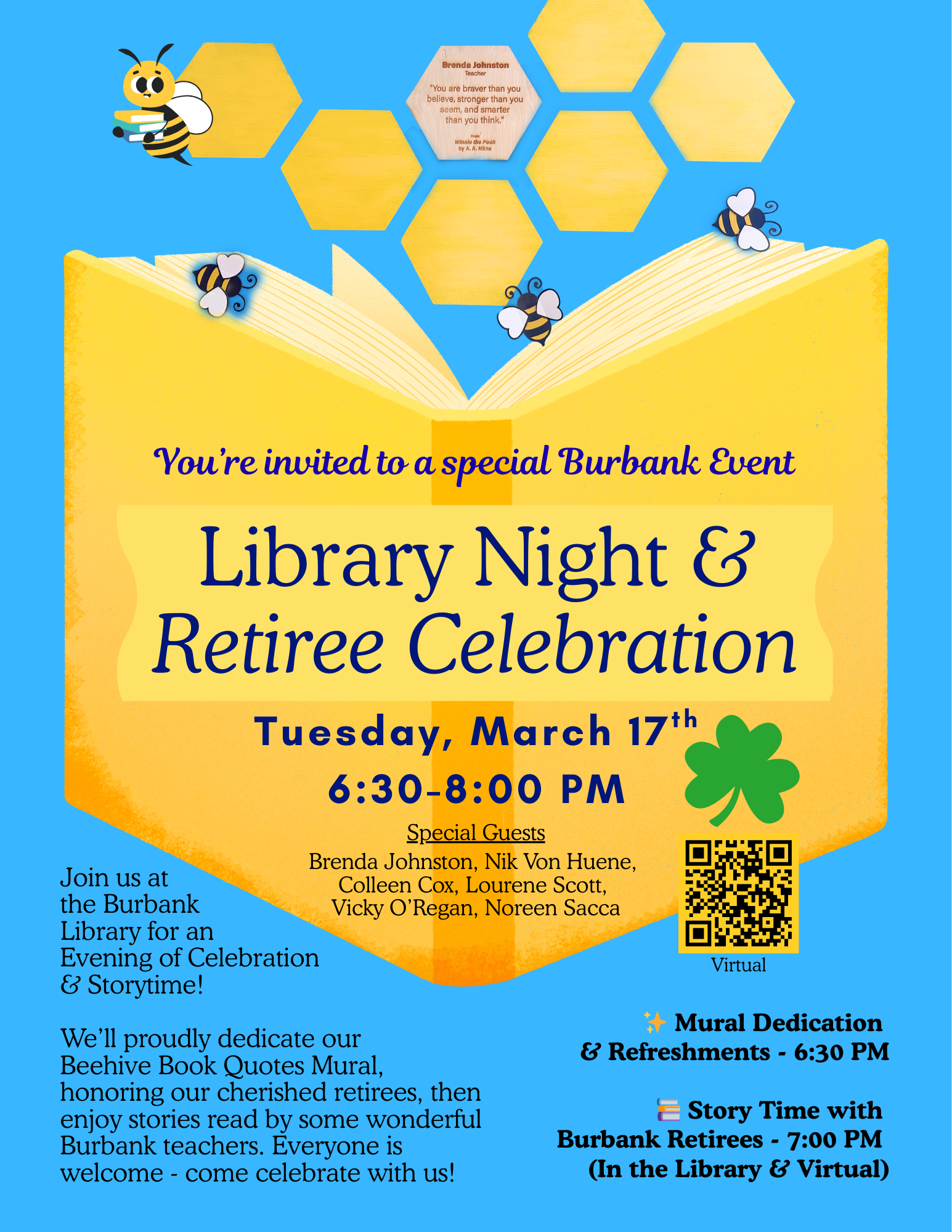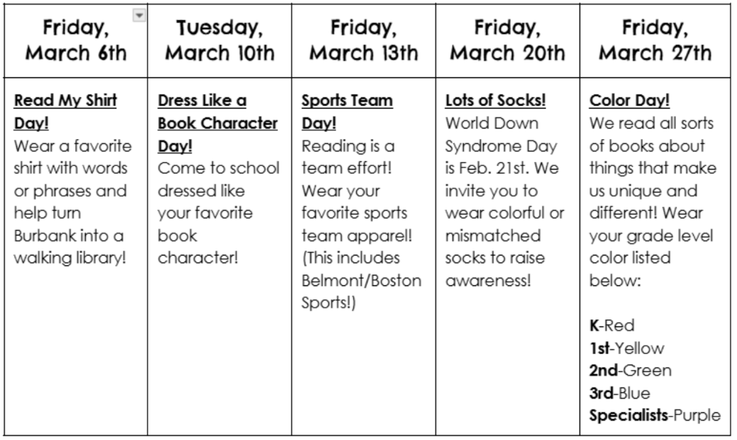 March brings so much to celebrate! We honor Women’s History Month and National Reading Month, and we can’t wait for Burbank’s much-anticipated Family Dance on Friday, March 6th, from 6:00–8:00 PM. Throughout the month, we’ll share our love of books with themed spirit days (see the calendar below) and special events like Library Night and our Retiree Dedication on March 17th. We’re also thrilled to welcome storyteller Len Cabral back for a whole-school enrichment experience on March 11th, all made possible by the generosity of our fabulous PTA!