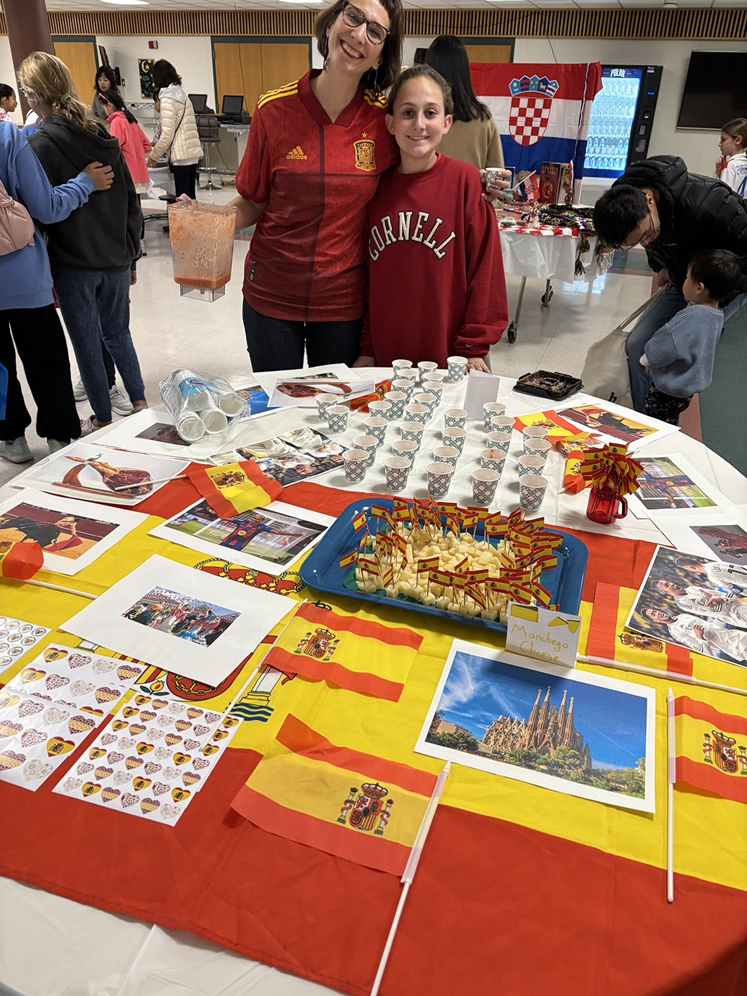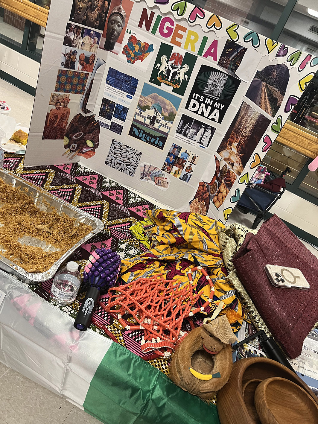 The cafeteria was buzzing with fragrant food, stunning national costumes, vibrant flag colors, and even live music!