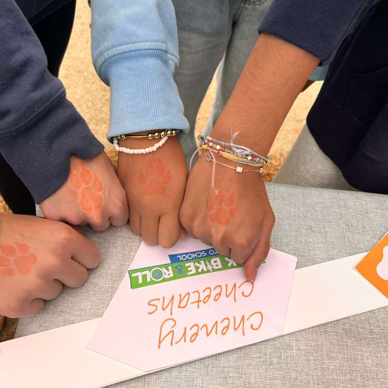 And a thank you to the PTO parent volunteers and teachers who chaperoned walking routes, made signs, handed out event swag, and donned those high viz jackets to boost the party vibes on the blacktop :)